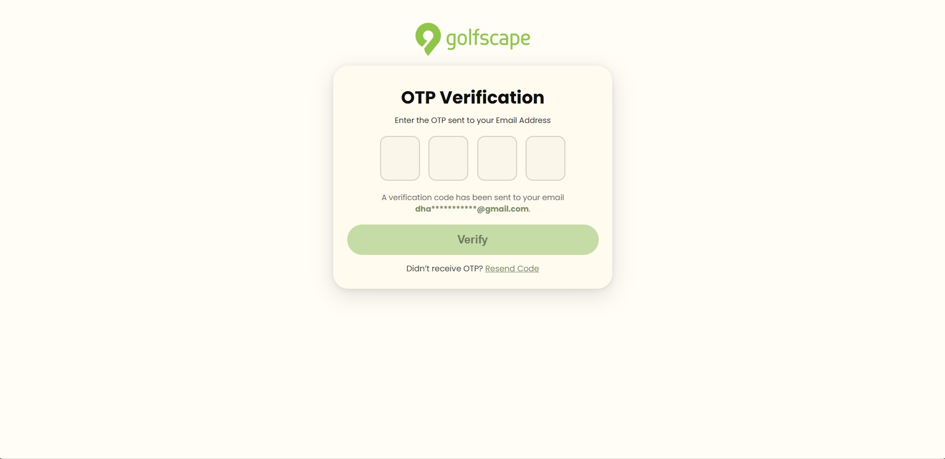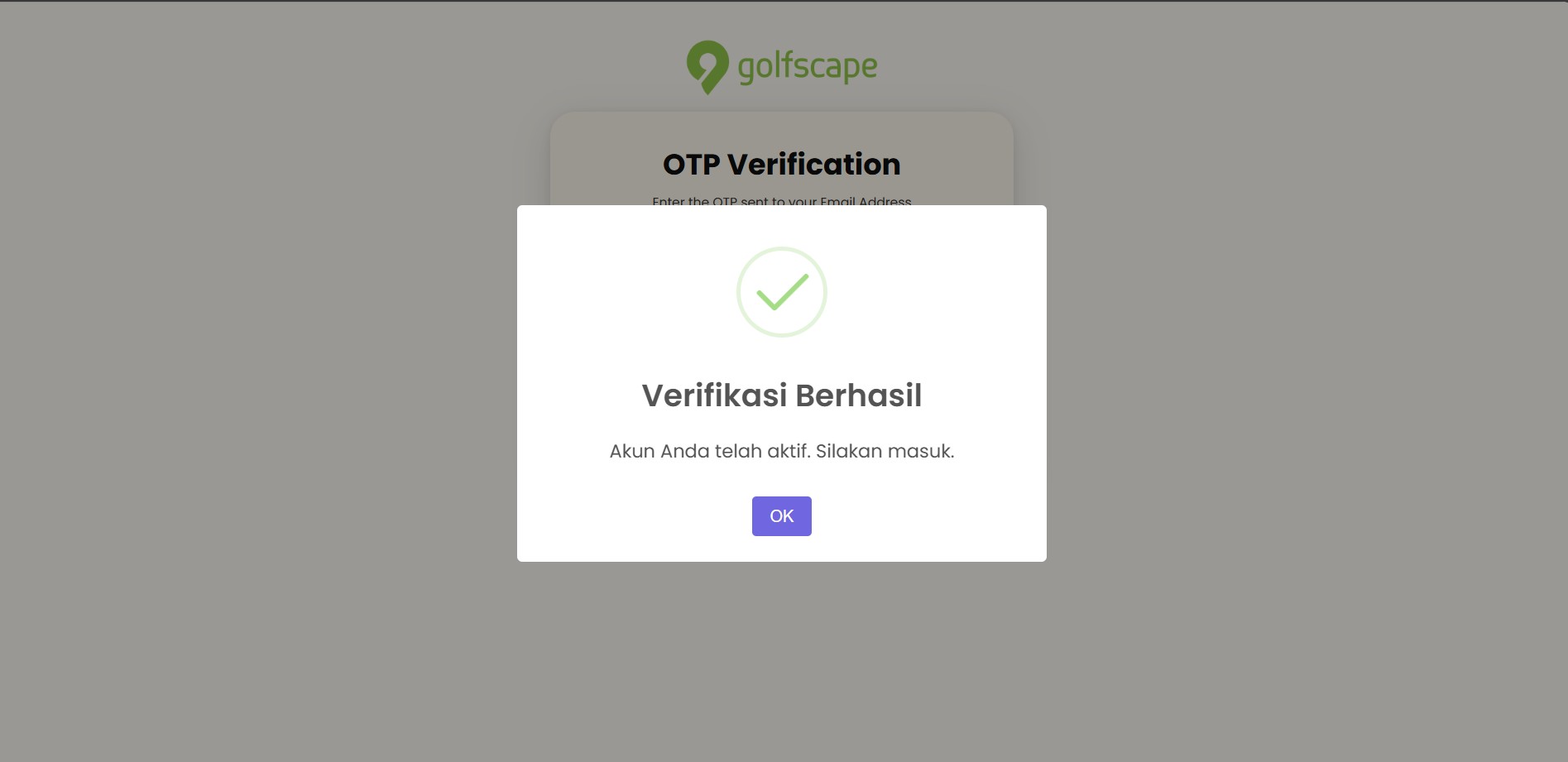 implementasi tampilan dan alur autentikasi pengguna pada aplikasi Golfscape yang terdiri dari empat fitur utama: Login, Pendaftaran Akun (Register), Verifikasi OTP, dan Reset Password. Seluruh proses pendaftaran akun dan pengaturan ulang kata sandi akan divalidasi menggunakan kode OTP yang dikirimkan ke email pengguna untuk memastikan bahwa email tersebut valid dan aktif.