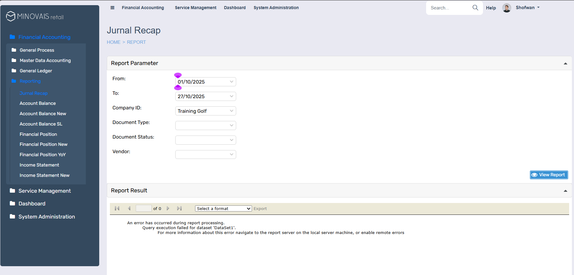 Baik mba, untuk yang lainnya sudah bisa, tapi untuk yang Jurnal Recap masih error seperti dibawah mba.
