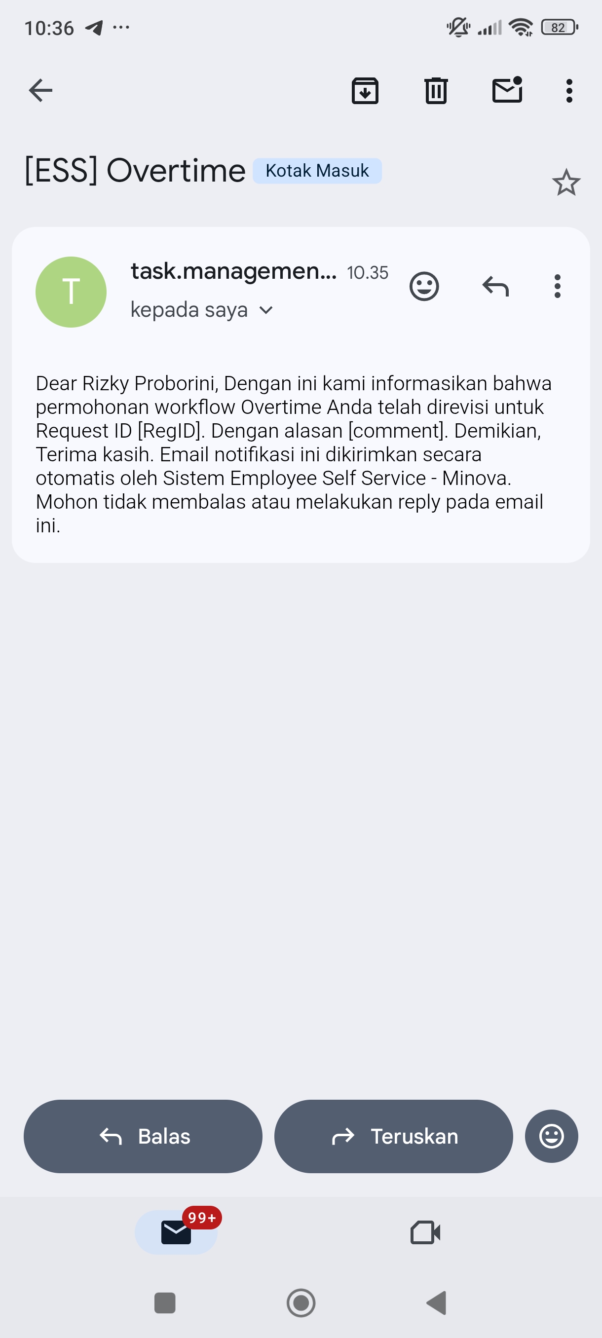 Ketika revise dan email masuk ke requester, taskID: revise_mail_creator di bagian RegID dan alasan comment belum terdefined data nya, seperti contoh pada gambar ini: