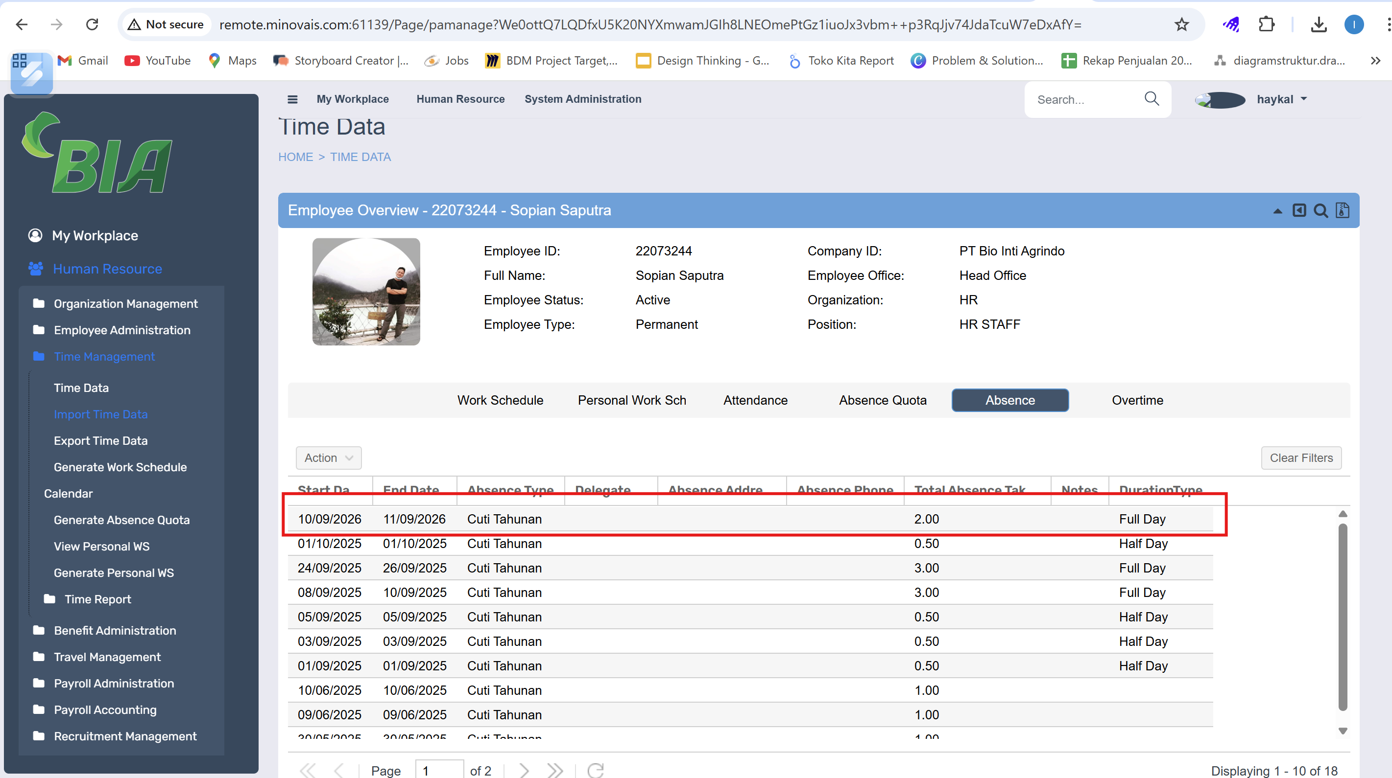 Mohon bantuannya untuk menambahkan validasi pada template upload PHRPA0018 (Absence). Hasil test sy tadi, jika field TotalAbsenceTaken diisi dengan nilai 0,5, data yang masuk terbaca menjadi 5. Tapi kalau 0.5 nah itu aman masuknya juga 0.5 dia db.