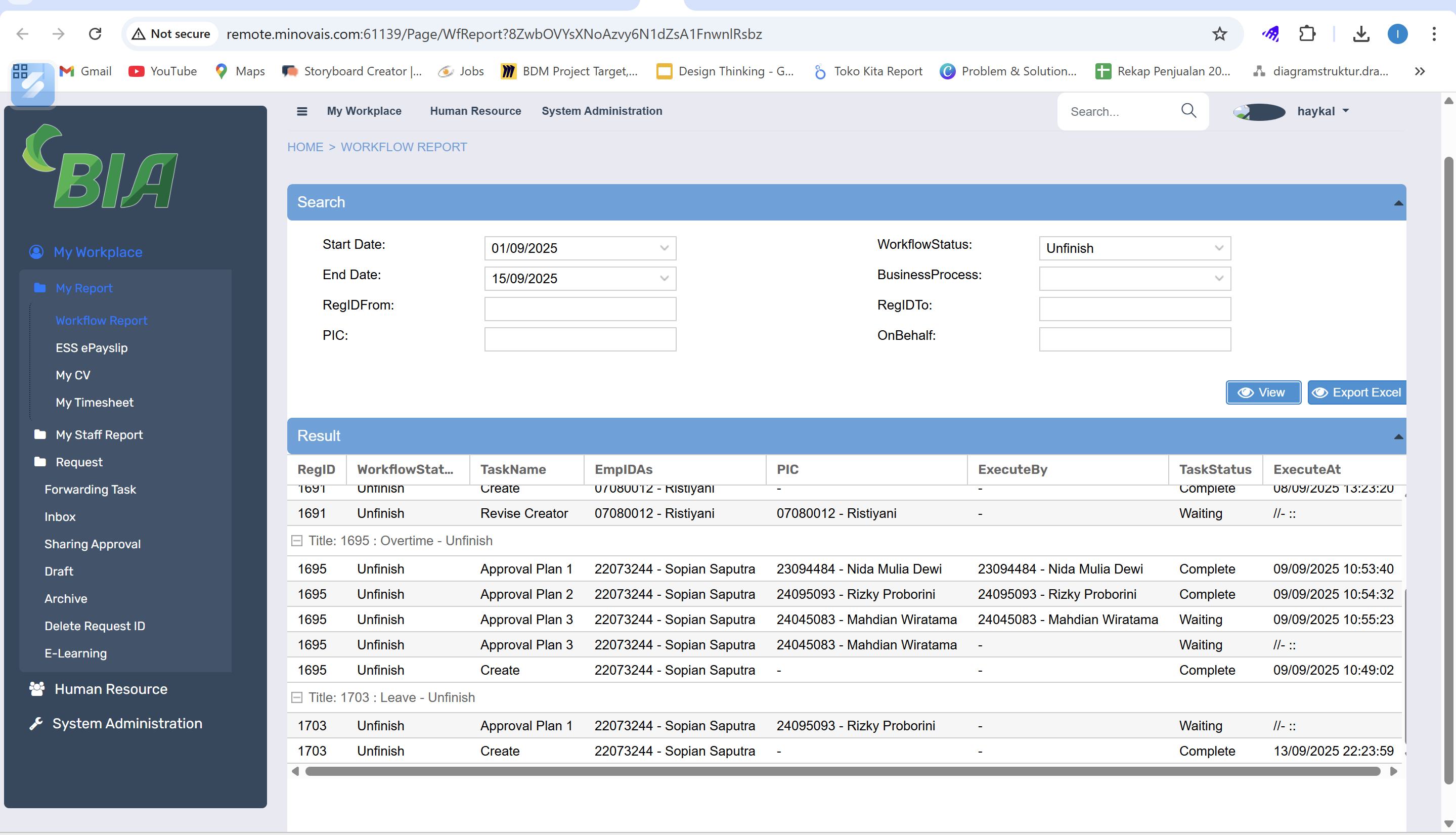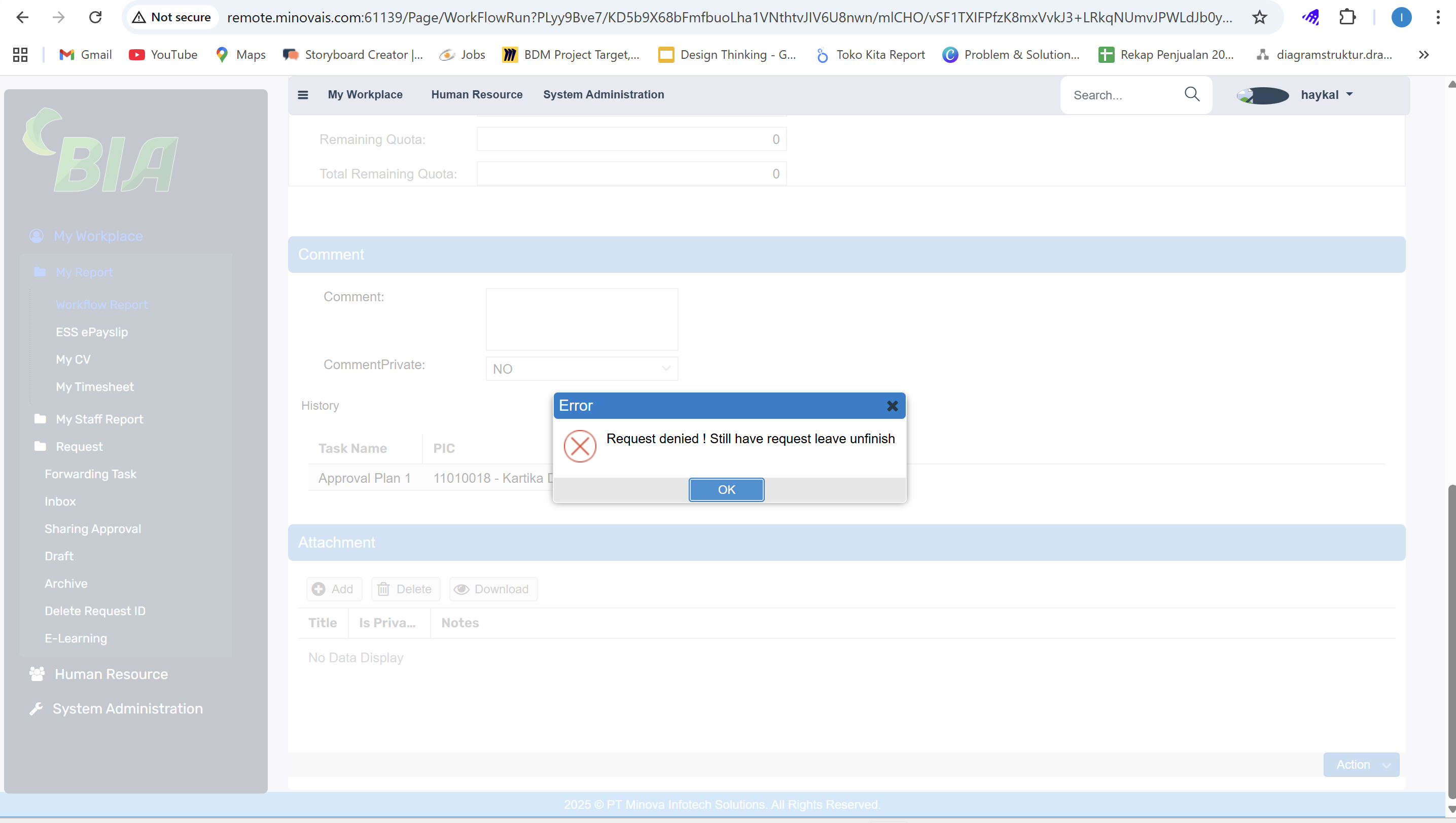 Mohon bantuannya untuk cek mas karena disini saya lihat belum ada pengajuan Leave yg Unfinish untuk employeeID 06120011 tapi saat saya coba approve terkena validasi juga mas.