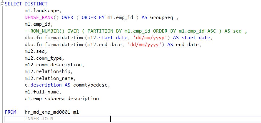 perubahan pada rdl rpt_HR_PA_Communication_2.rdl tepatnya pada data souce dsCommunication dimana saya komen ROW_NUMBER() OVER ( PARTITION BY m1.emp_id ORDER BY m1.emp_id ASC ) AS seq , dan mengembalikan ke m12.seq,