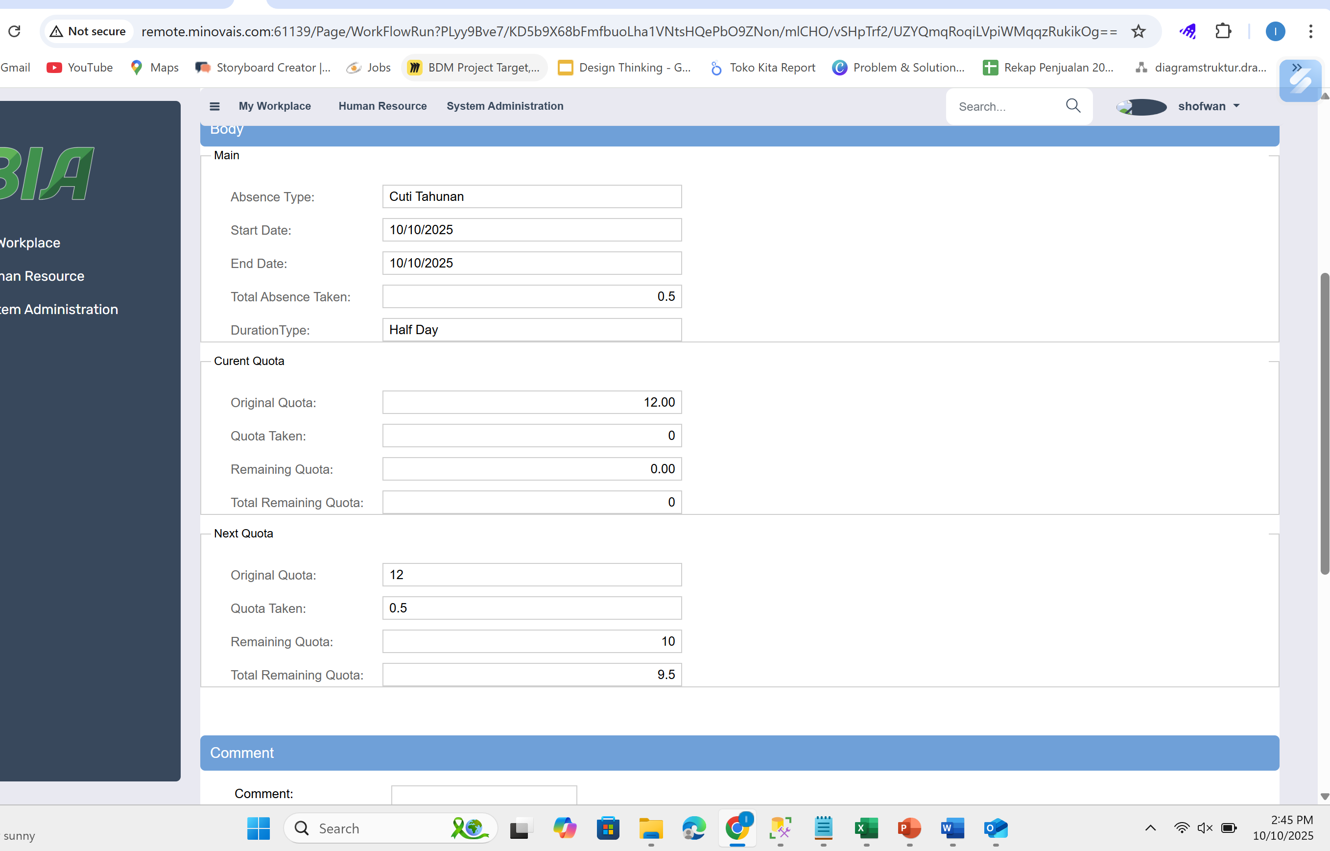 1. Jika AbsenceQuota saat ini sudah 0, maka sistem harus membaca ke AbsenceQuota berikutnya. Kalau masih tersedia masuk ke dalam Current Quota.