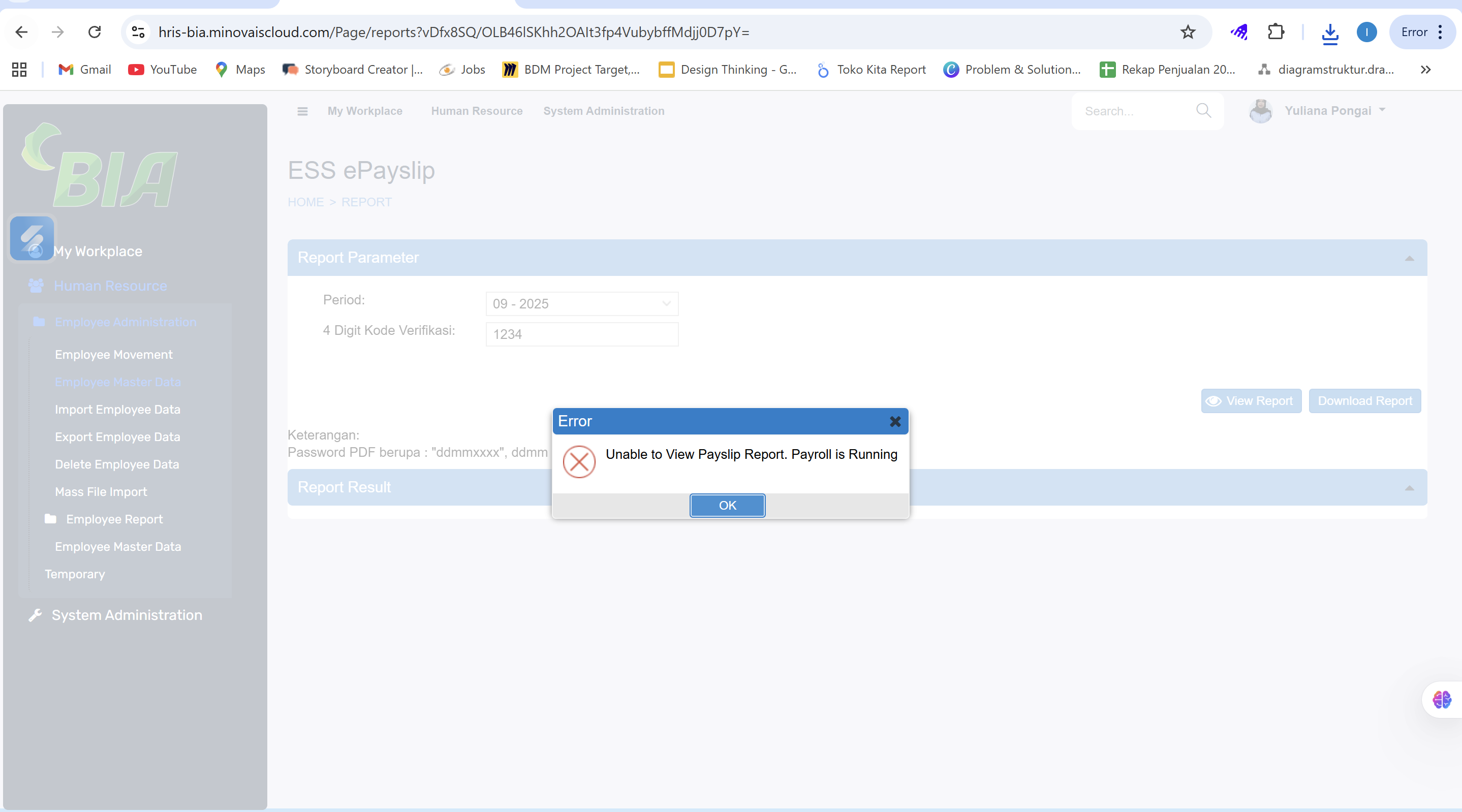 Jika running bulan 2025-09 tapi PayrollControlStatus masih 'S' (Start) atau 'C' (Correction), maka payslip tidak bisa dilihat untuk periode 2025-09.