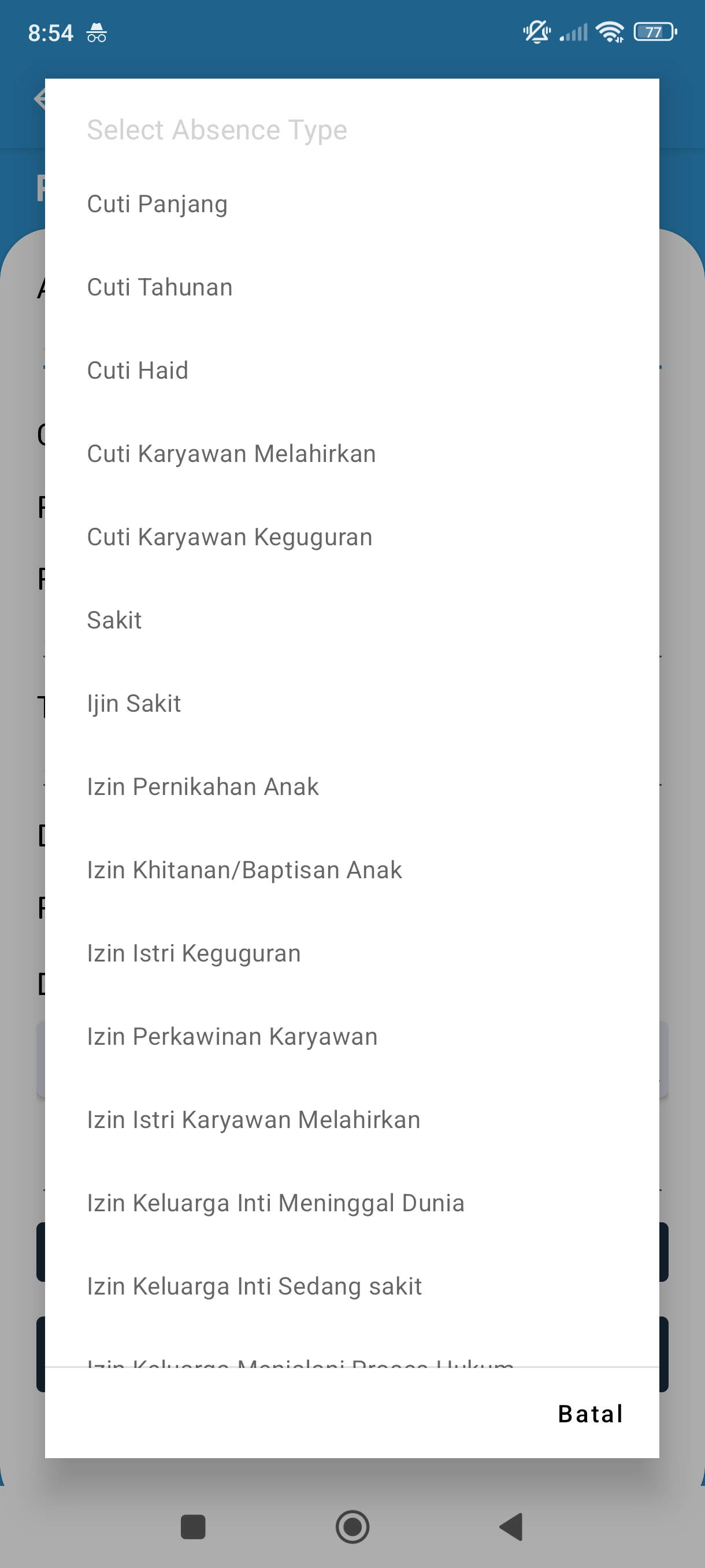 Apps Mobile - Menambahkan Pilihan di Absence Type Aplikasi Mobile BIA