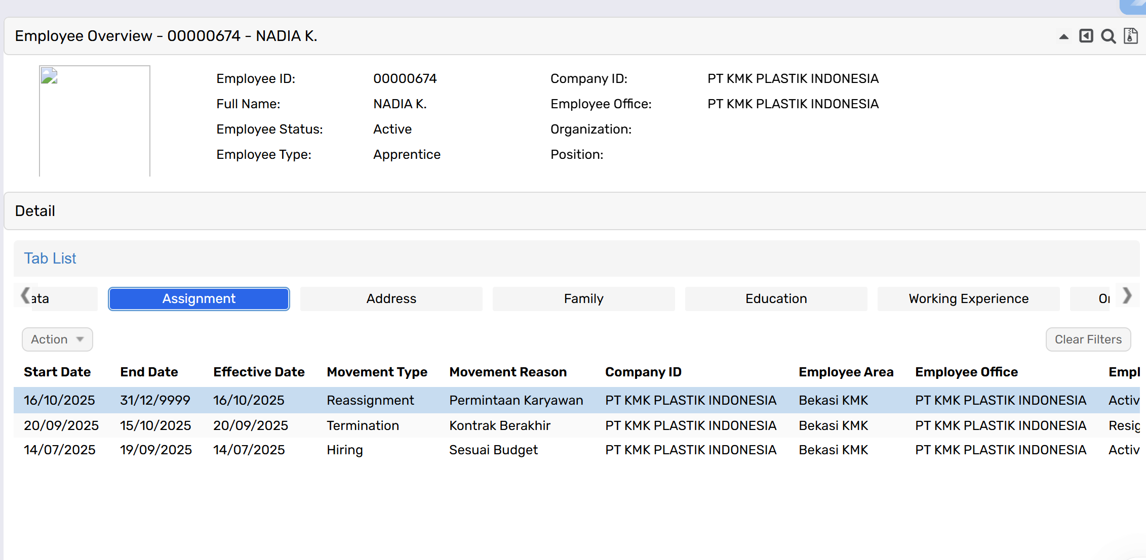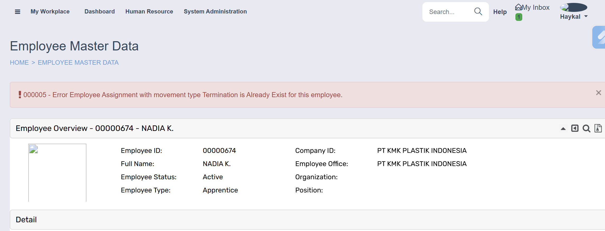 Mohon bantuannya untuk pengecekan issue di mana ketika sudah terdapat MovementType Termination, proses termination berikutnya tidak dapat dilakukan.