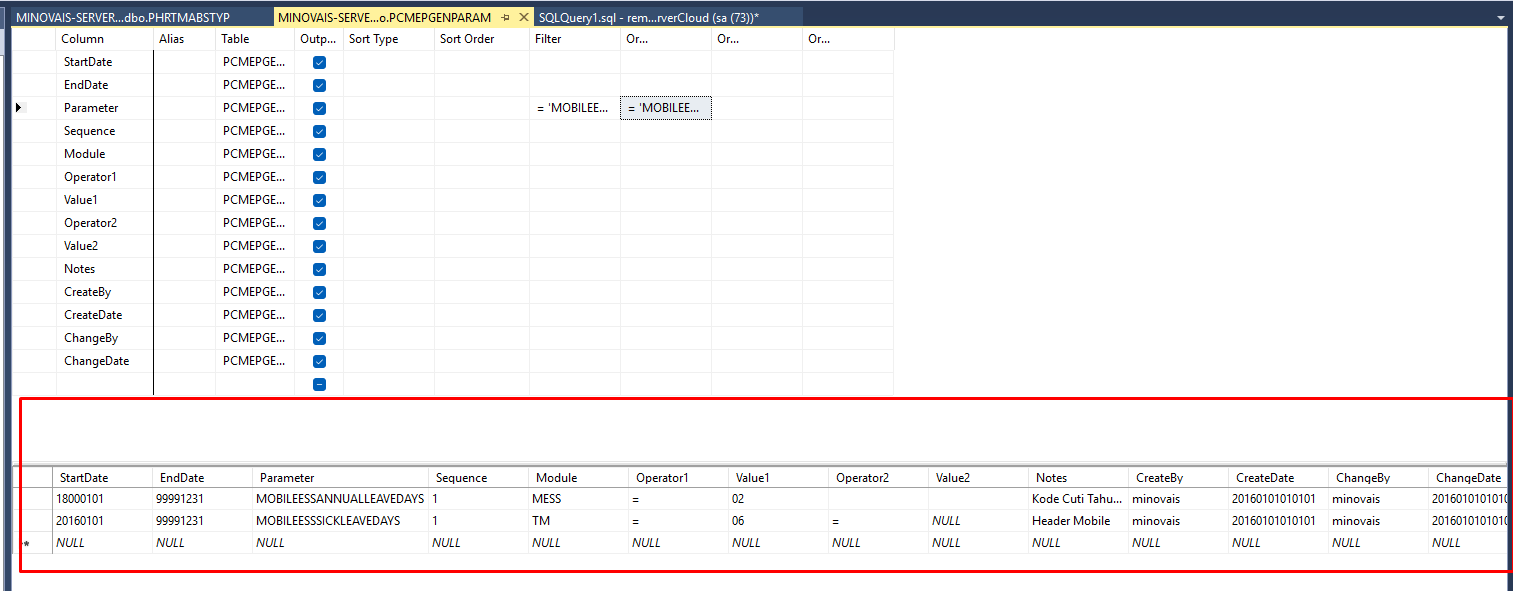Saat ini, konsep yang diinginkan adalah agar data cuti yg ditampilkan diambil berdasarkan Periode Quota Cuti yang aktif, dari field Start Deduction, End Deduction, dan Absence Quota Type (Cuti Tahunan) pada tabl PHRPA0017.