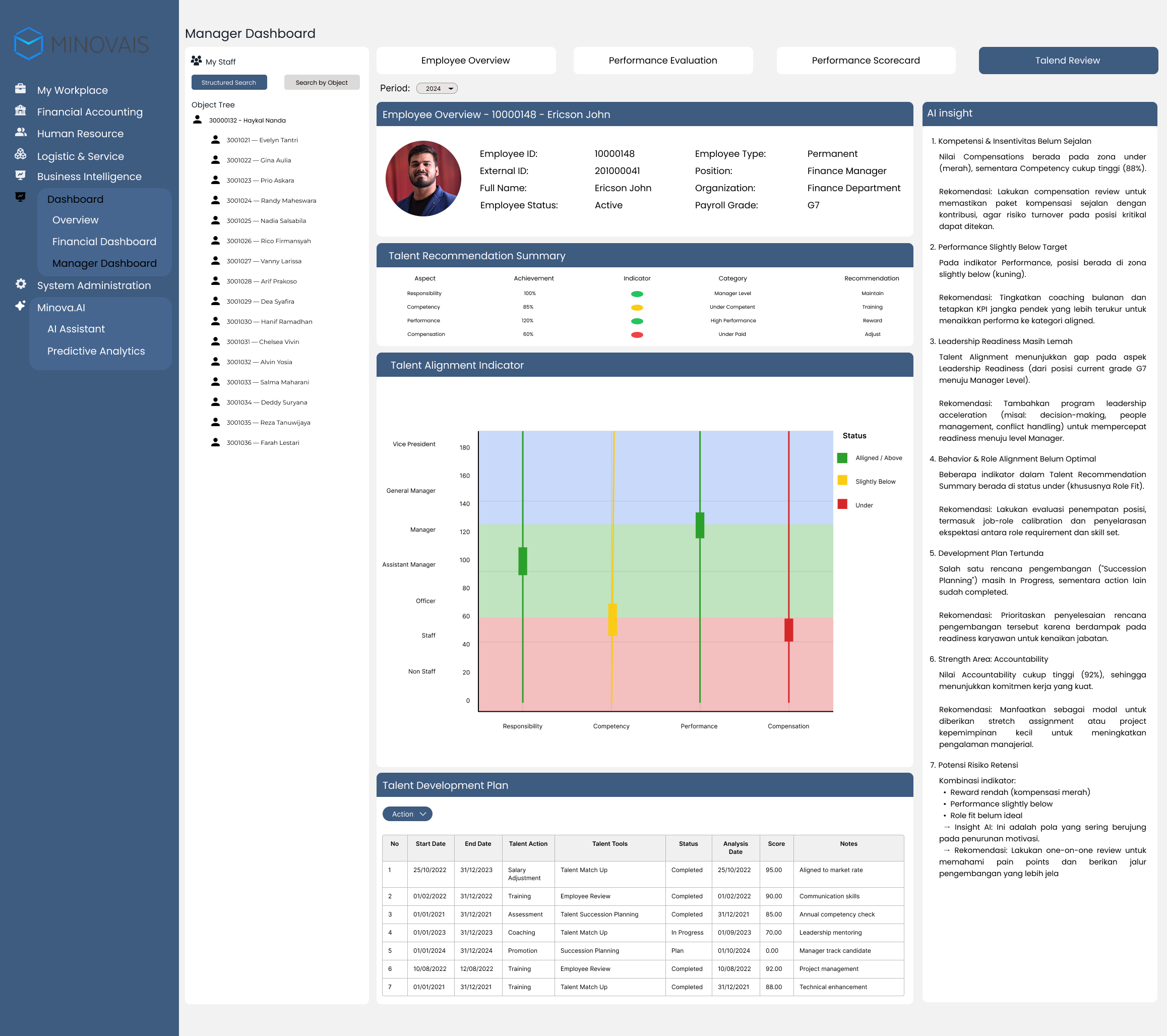 Mohon bantuannya untuk melakukan implementasi fitur ini yang bertujuan untuk memberikan analisis otomatis terhadap karyawan berdasarkan data dari Talent Recommendation Summary dan Talent Development Plan. User (manager) dapat menekan tombol “Analyze with AI”, dan sistem akan menampilkan hasil analisis berbentuk structured card yang berisi:
