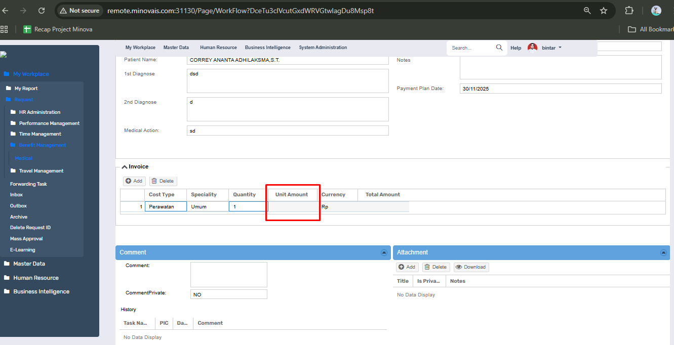 dear tim developer mohon support nya untuk pengecekan pada ess medical dimana pada cost type jika unit amount tidak diisi, maka bisa submit. padahal seharusnya unit amount diisi sehingga menyebabkan flow selanjut nya menjadi error karena NaN.