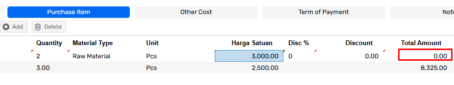 Untk di Purchase sudah ok Mbak. Untk Total Amountnya sudah keauto, dan savenya sudah berhasil.