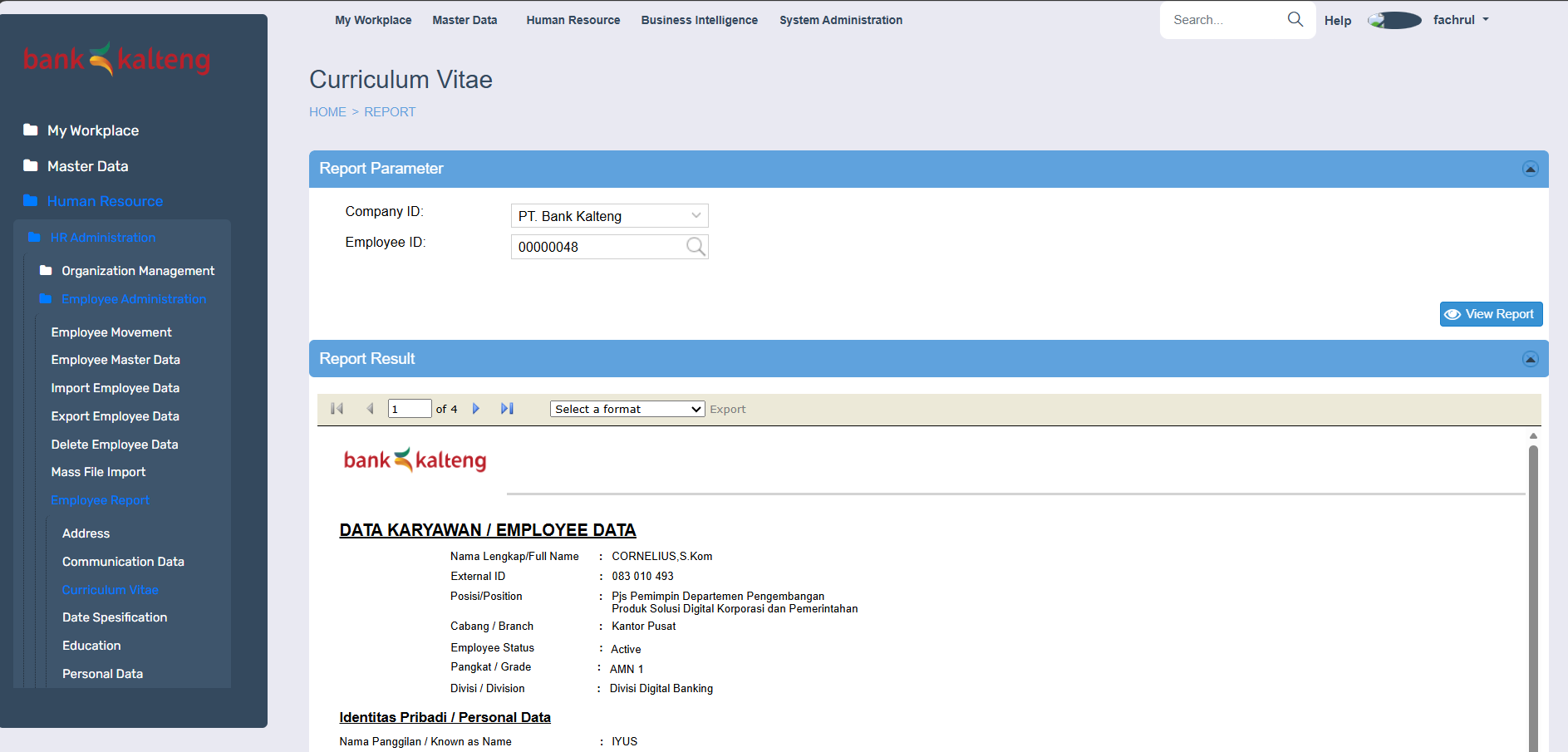Mohon bantuannya untuk memperbaiki report Curriculum Vitae. Saat ini terdapat ketidaksesuaian pada bagian Posisi, dimana posisi terbaru seharusnya Pjs Pemimpin Departemen Pengembangan Produk Solusi Digital Korporasi dan Pemerintahan, namun di dalam report masih tercantum posisi lama yaitu Pemimpin Departemen Layanan Digital Banking.