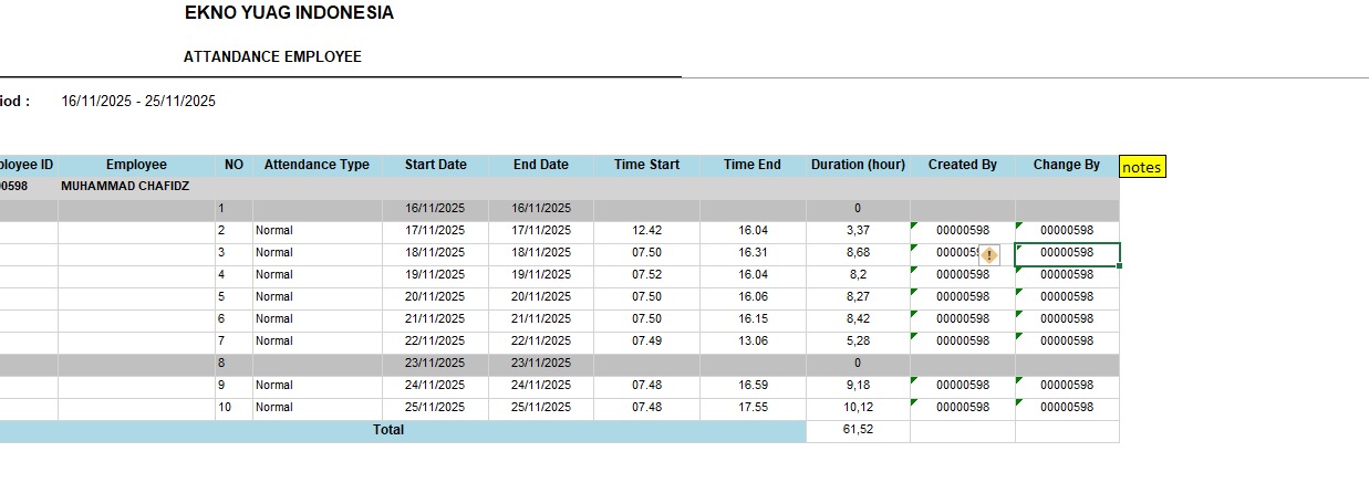 Mohon bantuannya untuk menambahkan field Notes untuk report Attendance Recap contoh pada gambr terlampir ya, ambil dari field Notes dari table PHRPA0019 ya
