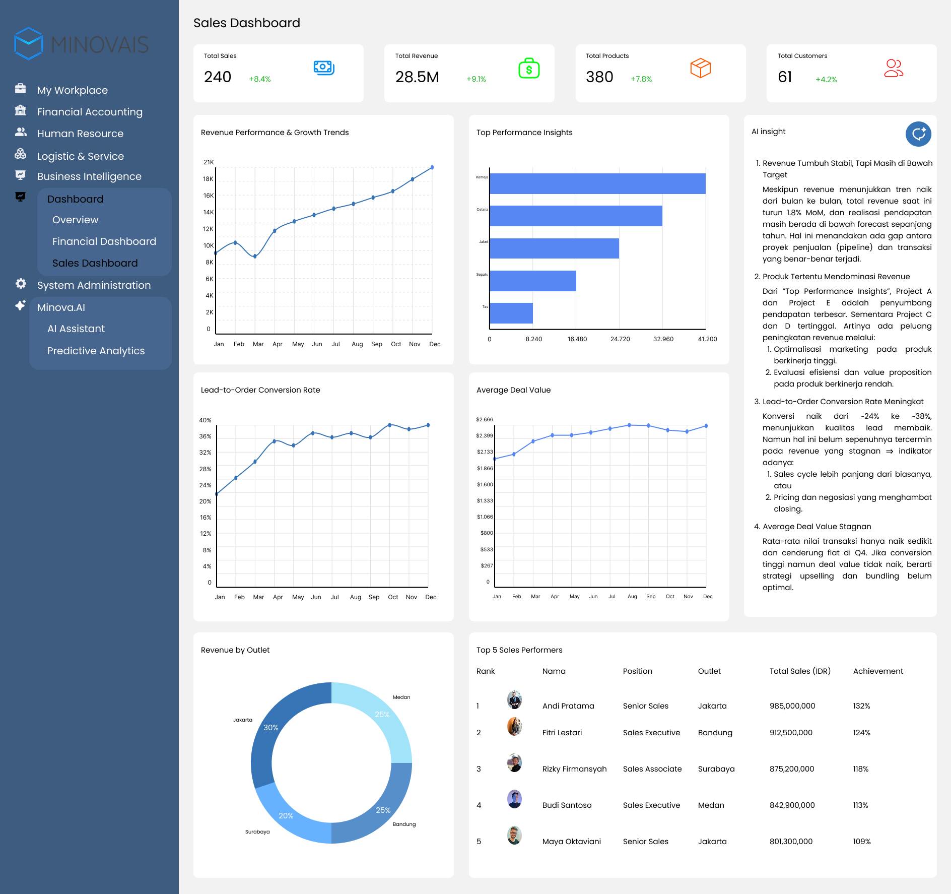 • AI Insight menghasilkan minimal 4 insight dengan rekomendasi actionable.