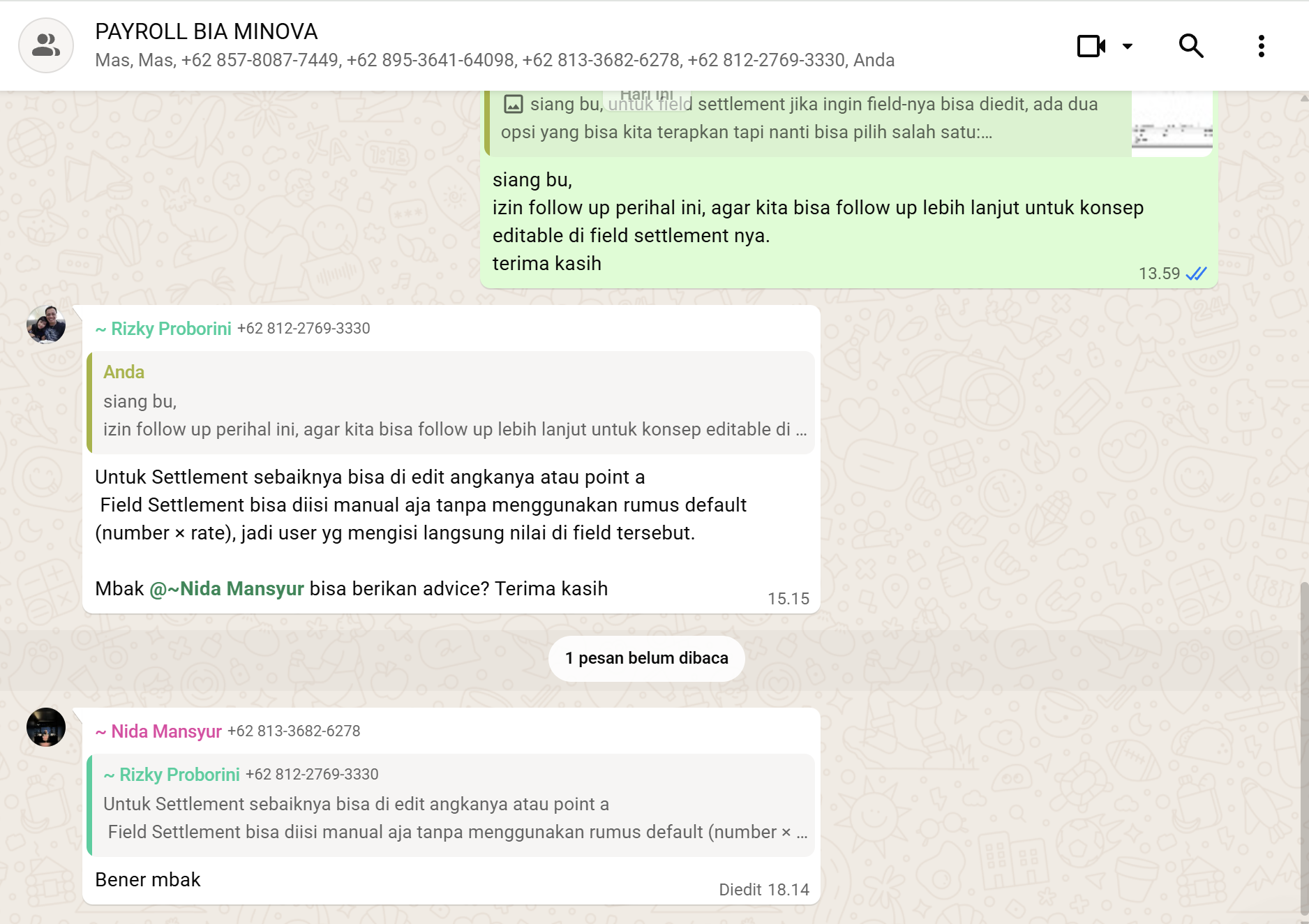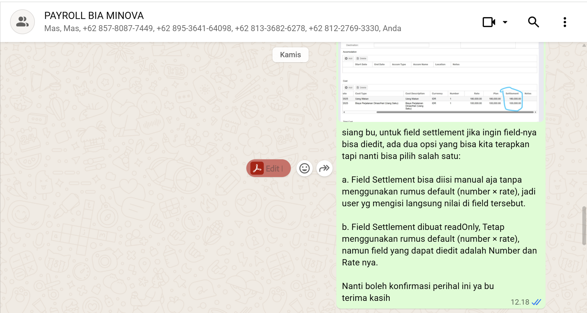 - Field Settlement bisa diisi manual aja tanpa menggunakan rumus (number * rate) jadinya default 0, nanti user yang mengisi langsung nilai nya di field tersebut