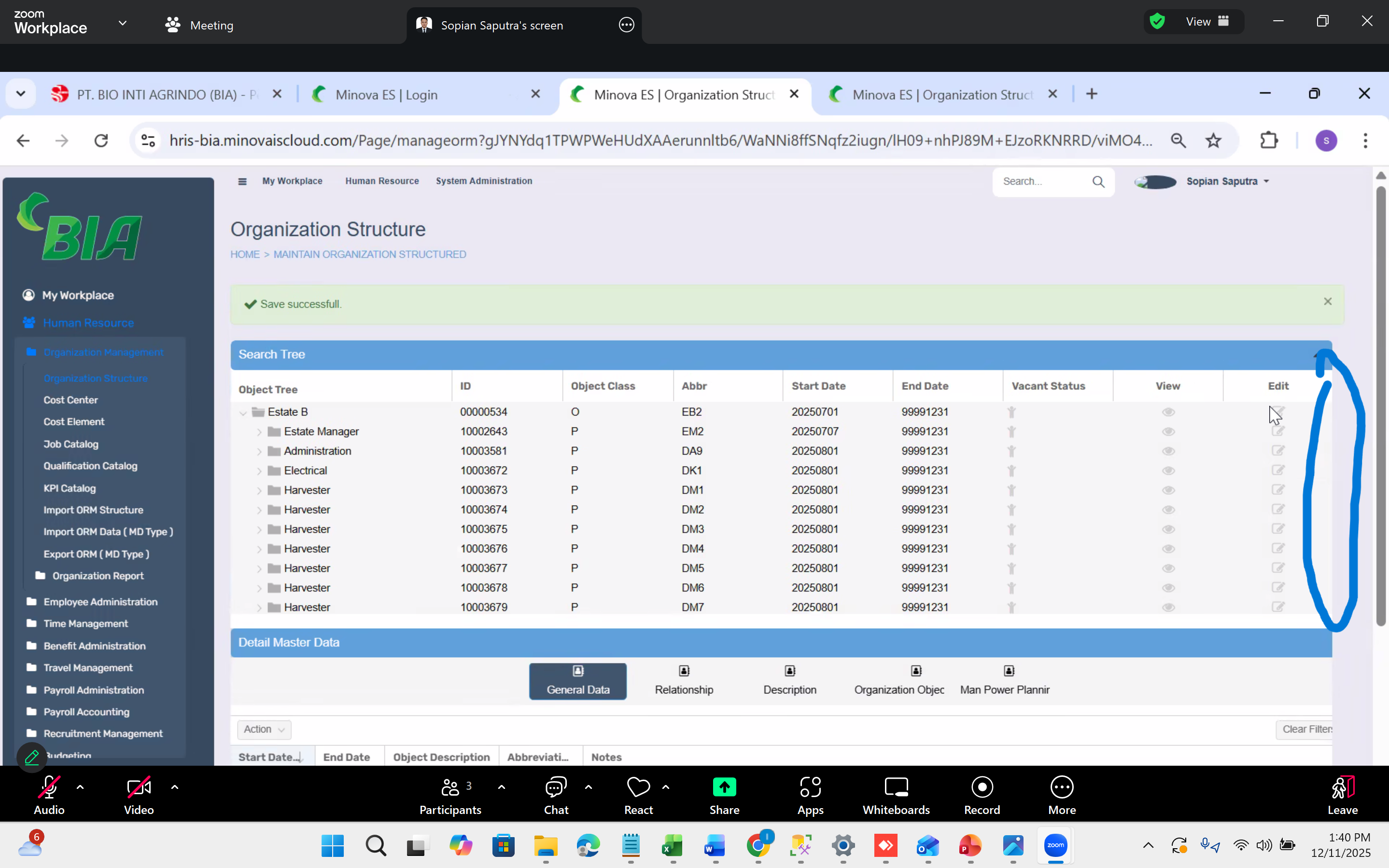 Mohon bantuannya untuk cek issue terkait fungsi scroll up & down di Organization hilang ketika sudah selesai Add Position / Organization baru ya.