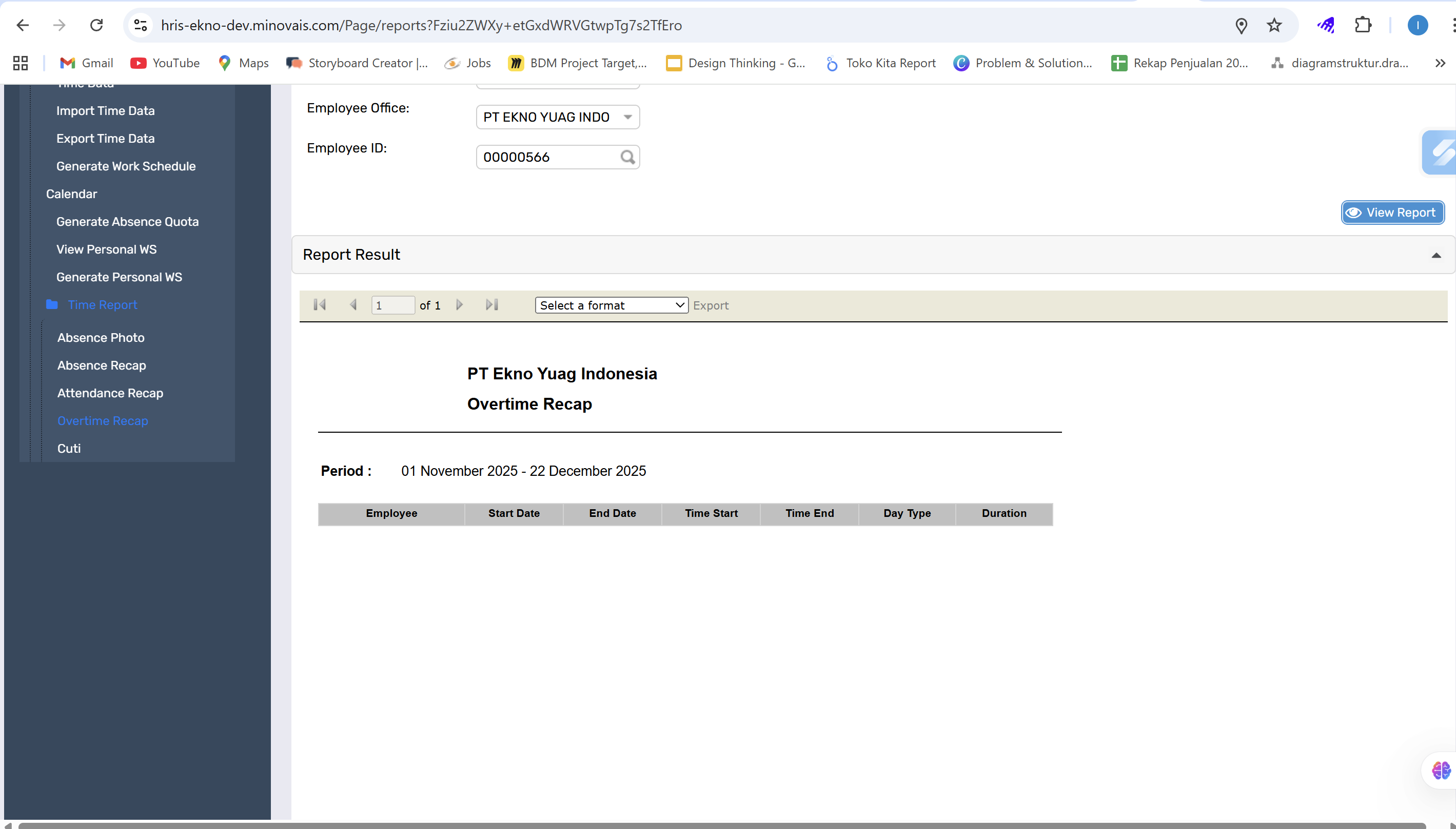 Report Overtime Recap Belum bisa tampil