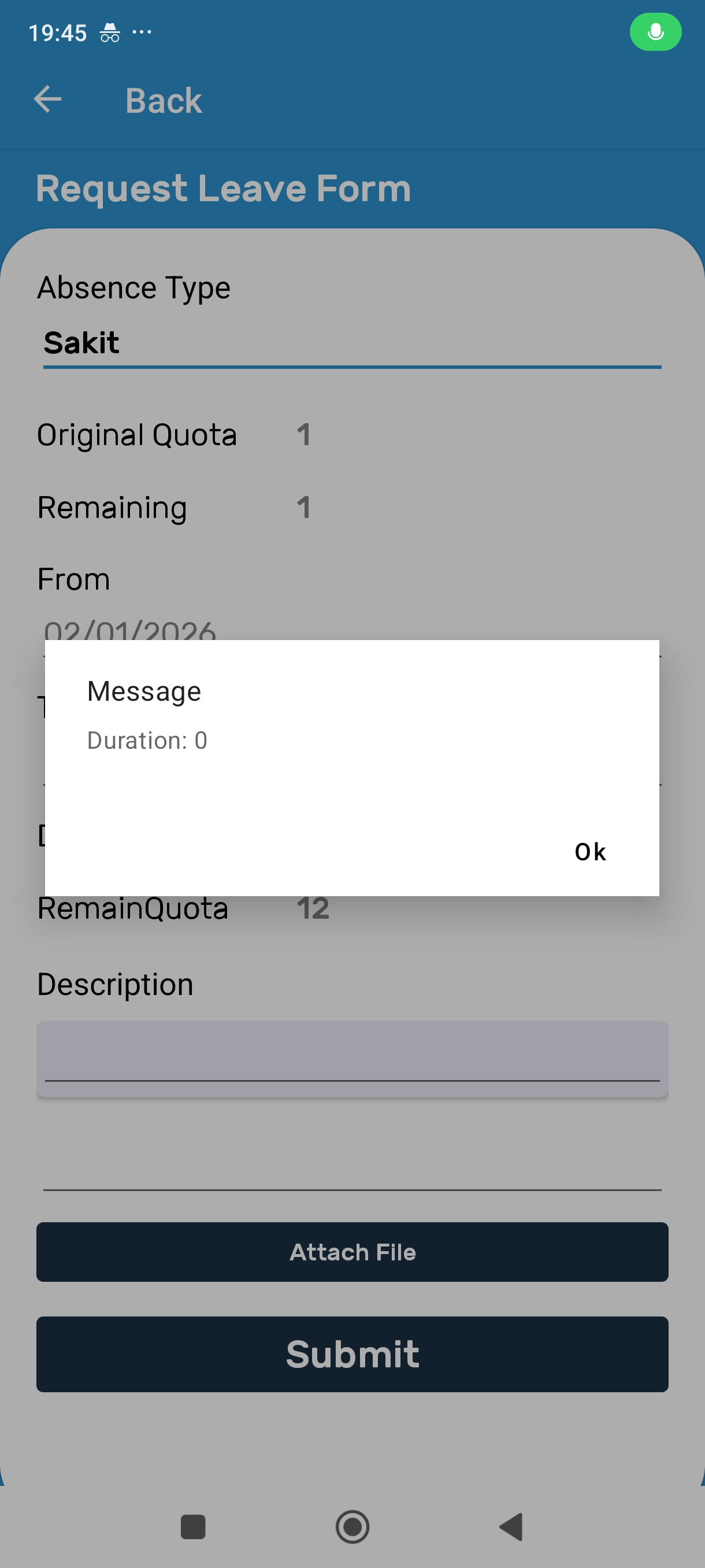 Validasi sebelum submit Leave di Aplikasi Mobile