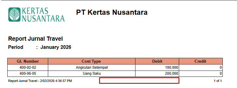 Tolong dibuatkan report Jurnal Travel ya. Designnya sama seperti report Posting To GL (Company) dengan beberapa catatan sebagai berikut: