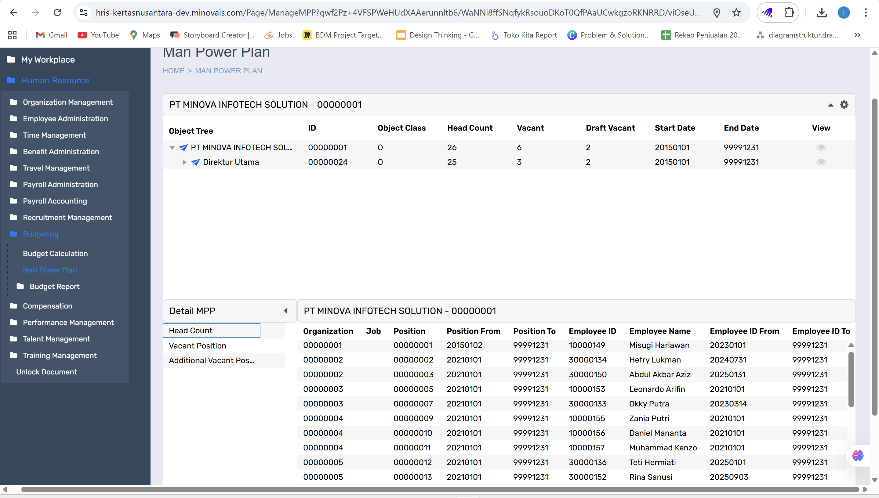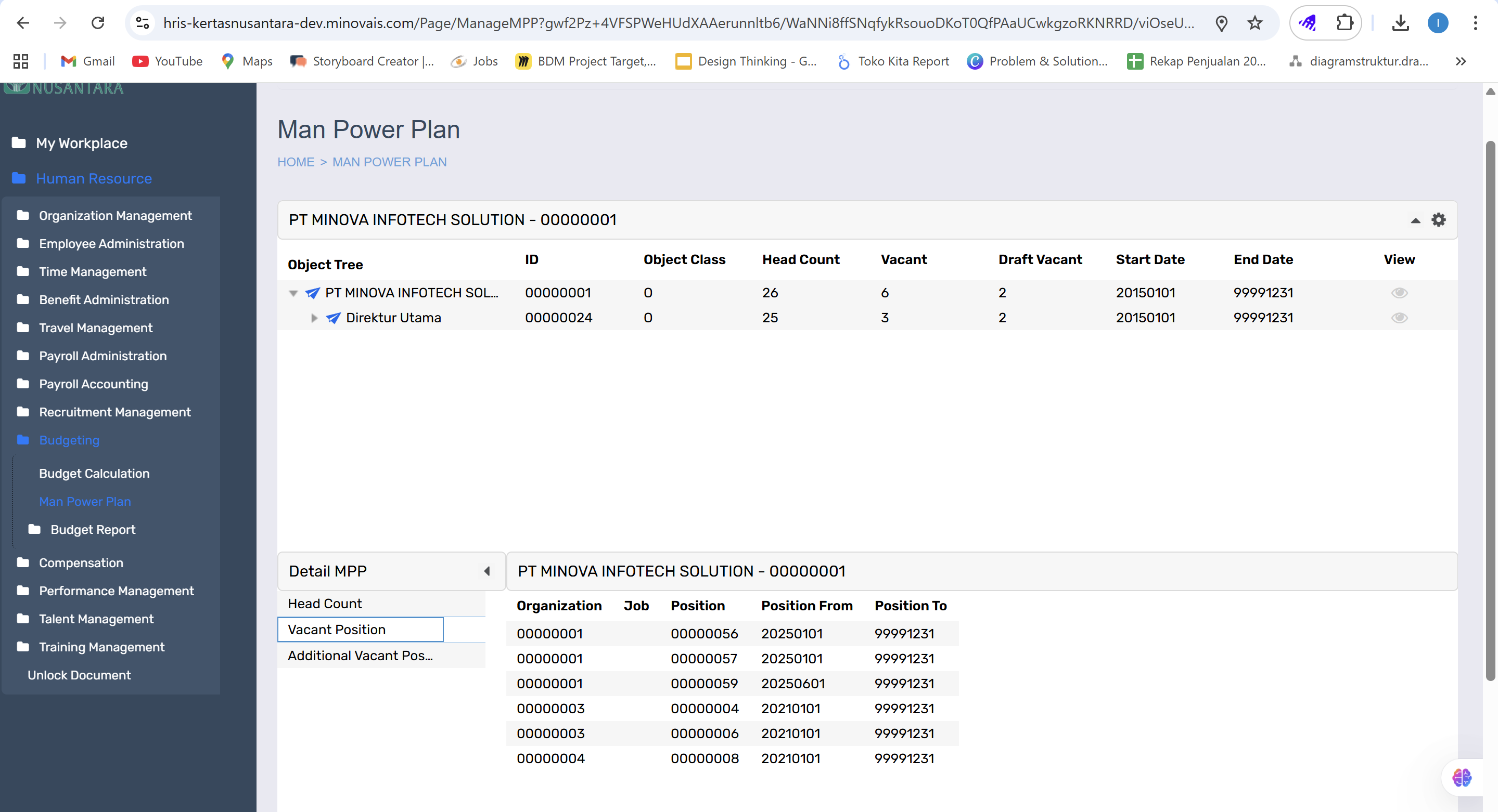 Mohon bantuannya, untuk cek di menu Budgeting -> Man Power Plan pada bagian Organization, Position saya cek masih tampil code bukan deskripsi nya, mohon dibuat tampil deskripsi agar mudah dikenali