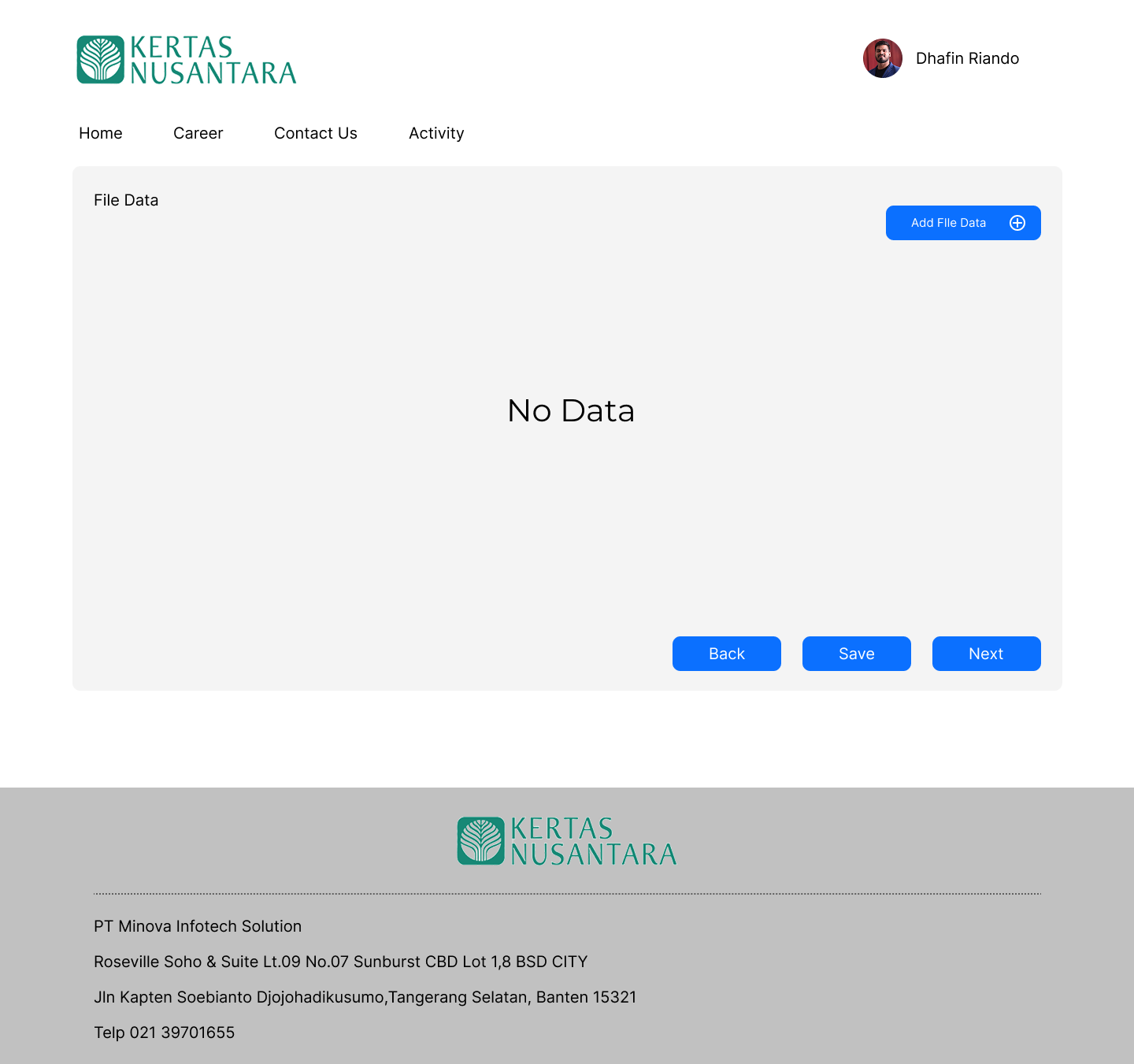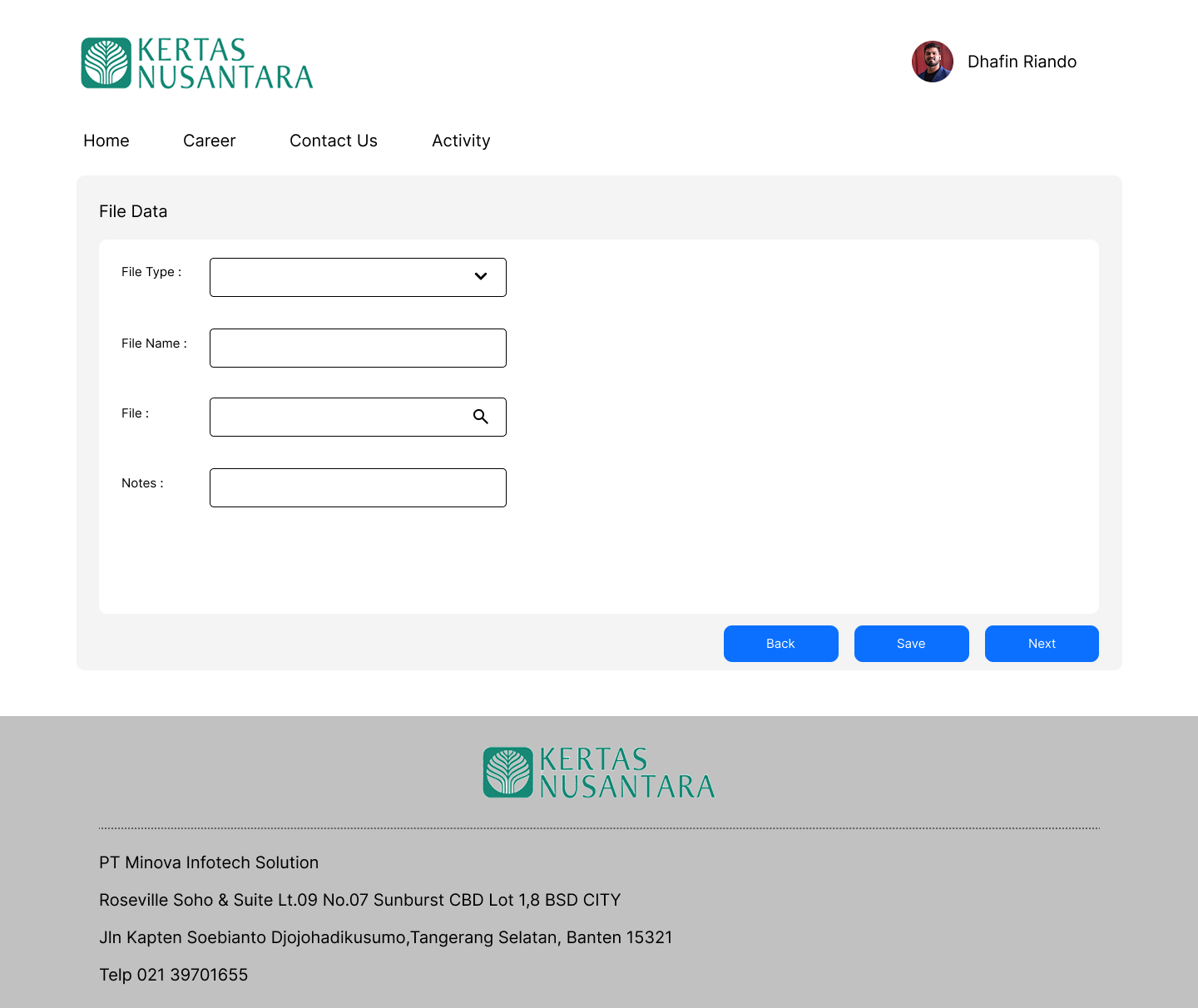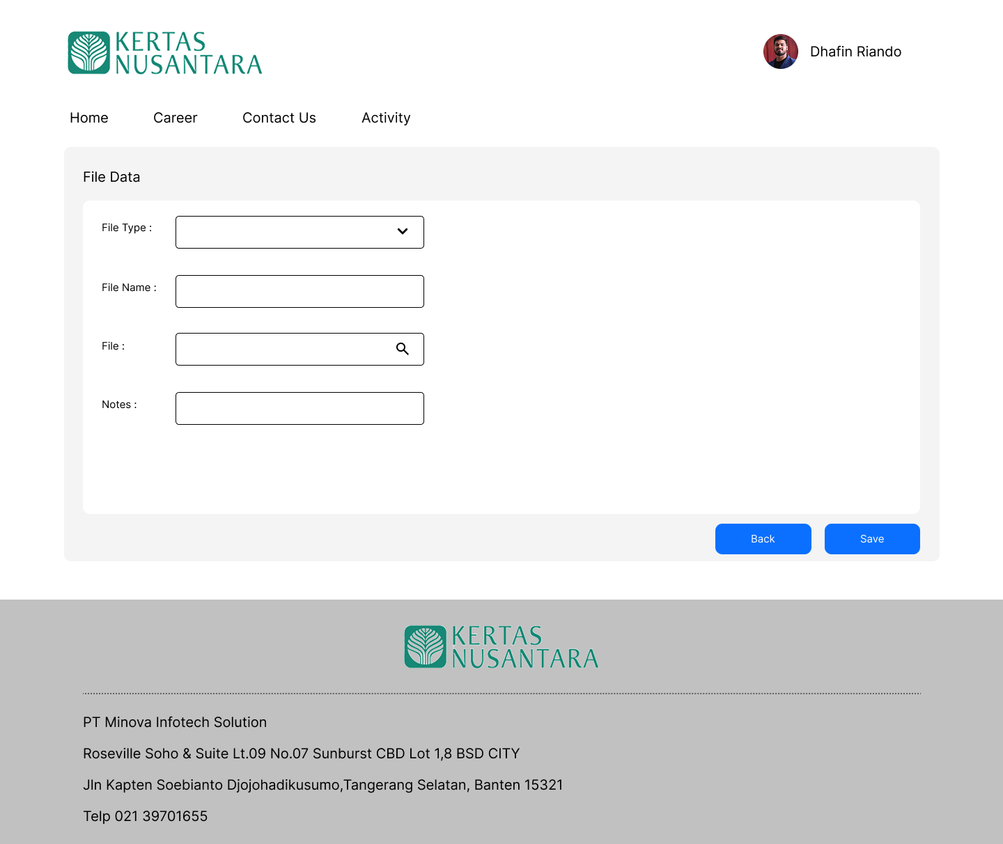 2. Halaman Add File Data (Form Input)
