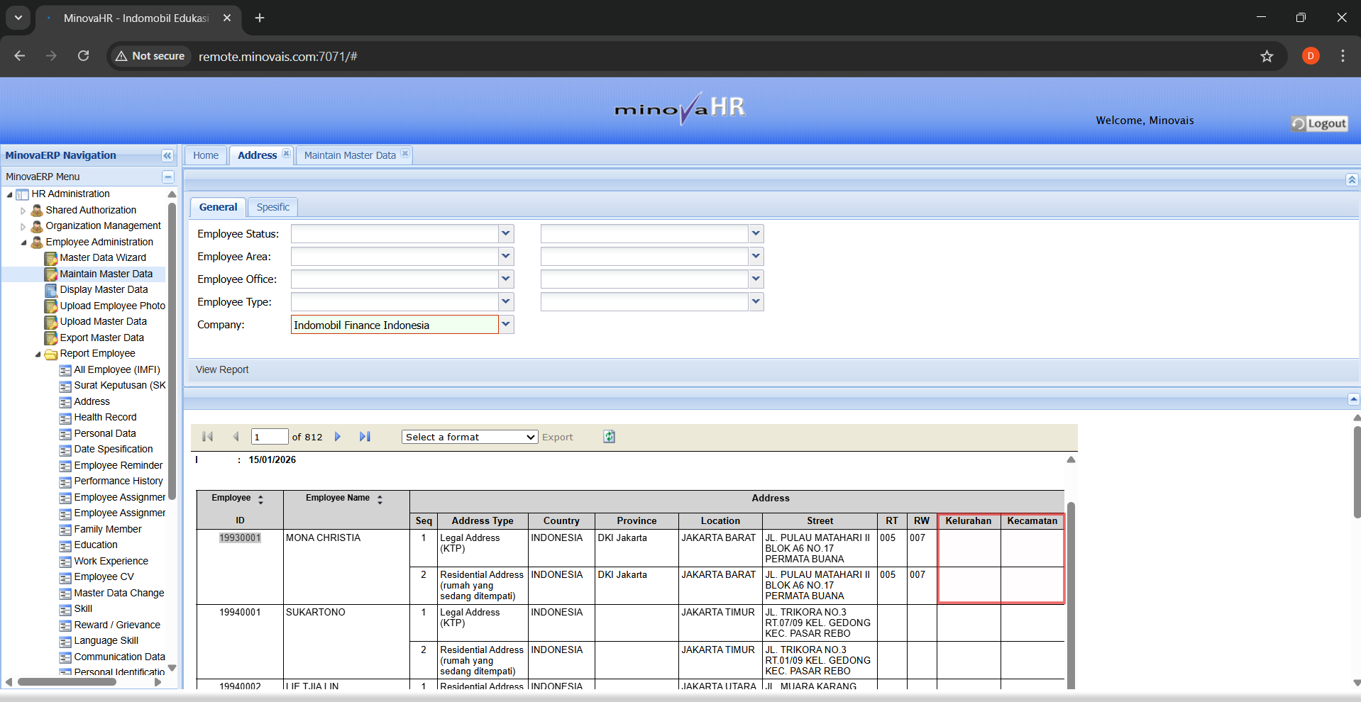 Mohon bantuannya untuk melakukan penambahan kolom RT dan RW pada Report Address. Saat ini, kolom RT dan RW belum ditampilkan di dalam Report Address. Mohon bantuannya agar kedua kolom tersebut dapat ditampilkan.