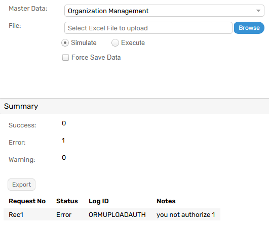 Menu Path: Human Resource > Organization Management > Import ORM Structure