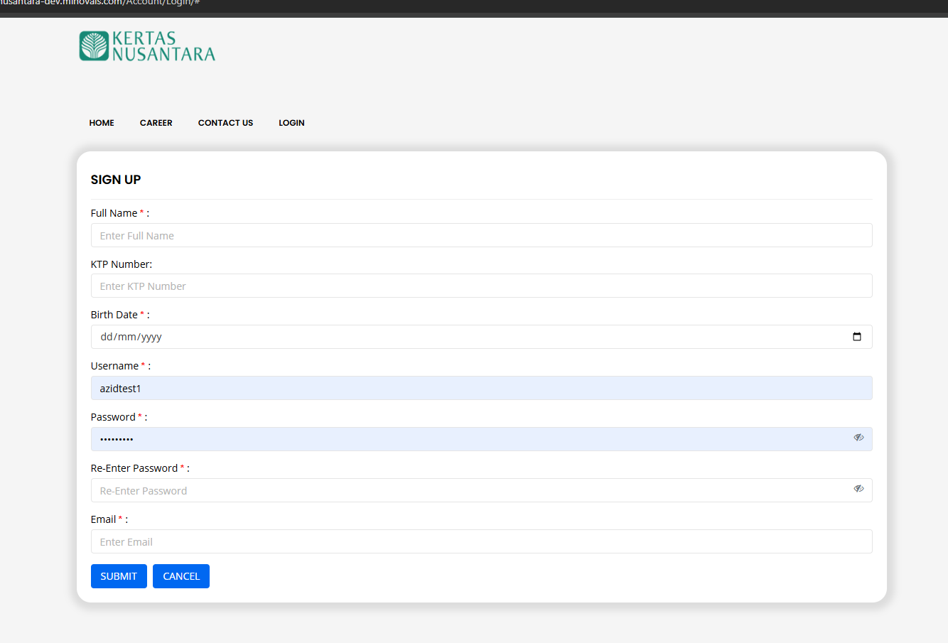 Penambahan Validasi di Halaman Sign Up port E-Recruitment Kertas