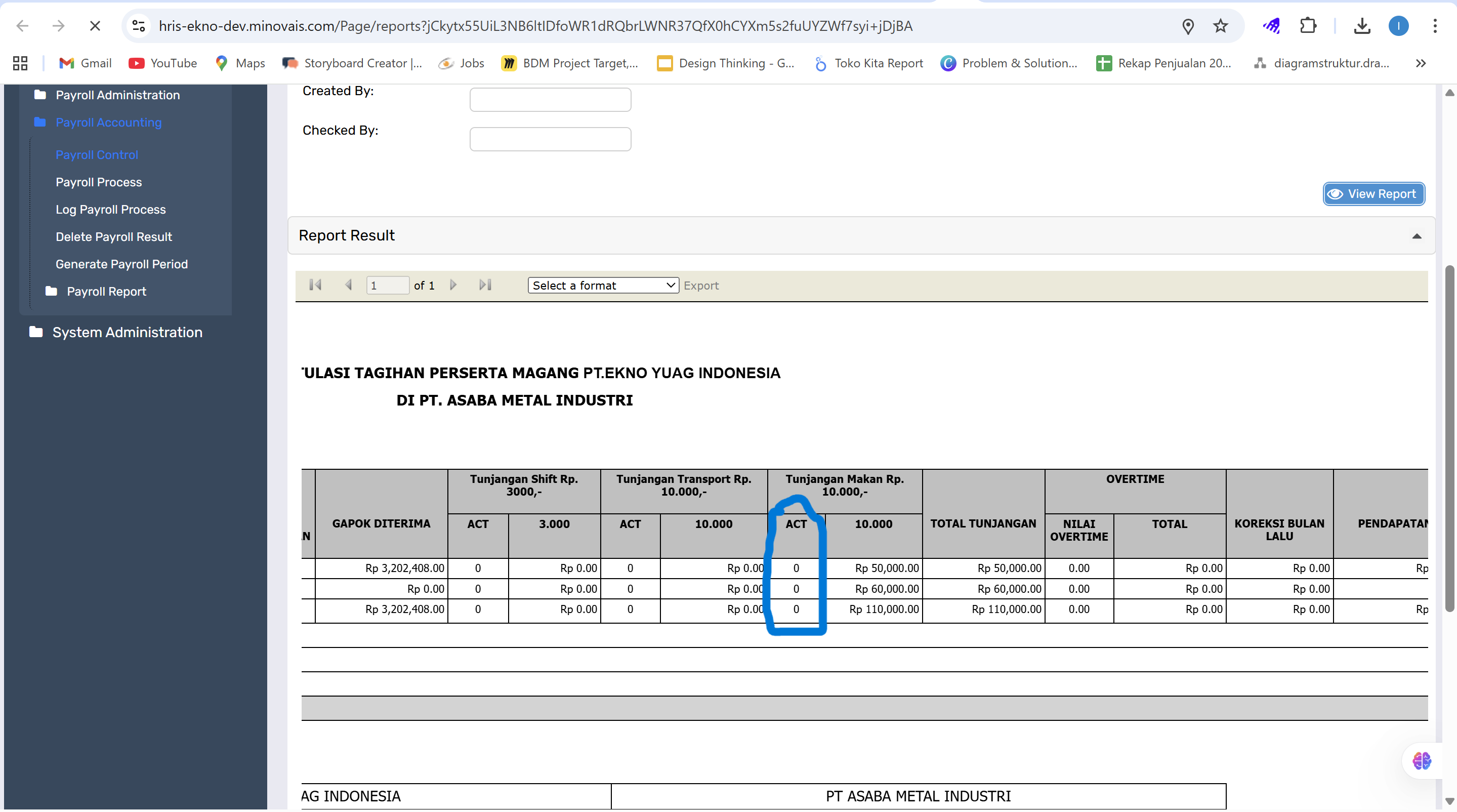 Mohon bantuannya, untuk perbaiki ACT di Tunjangan Makan pada report Invoice Detail Asaba agar mengambil dari