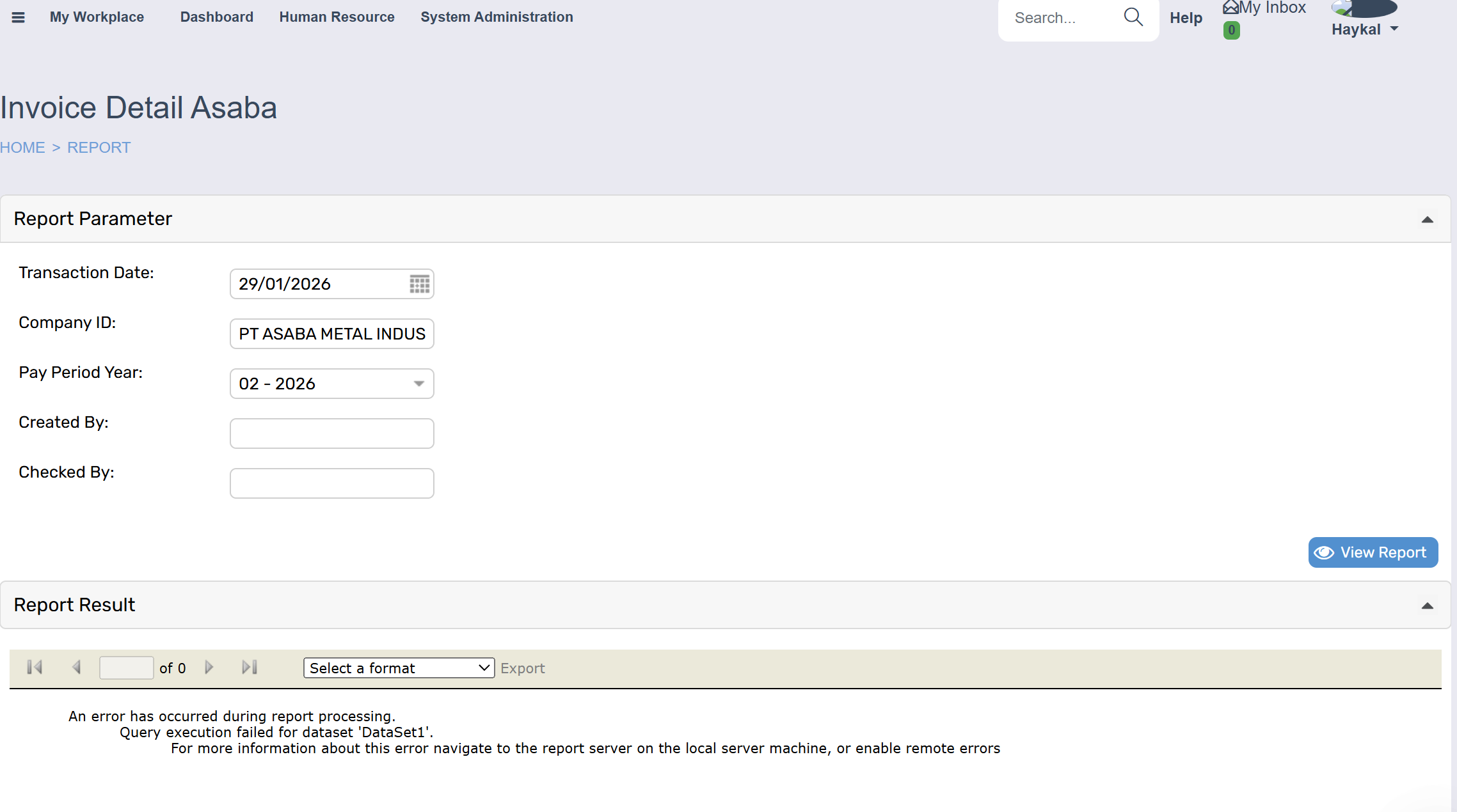Mohon bantuannya untuk cek report invoice detail Asaba di port dev yg bulan 02-2026 ada error seperti ini mas, kalau yg bulan 01 saya cek aman.